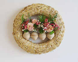 La corona de paja es adecuada para arreglos durante todo el año. Puede envolverlo con una cinta, decorarlo con flores y varias decoraciones de temporada.