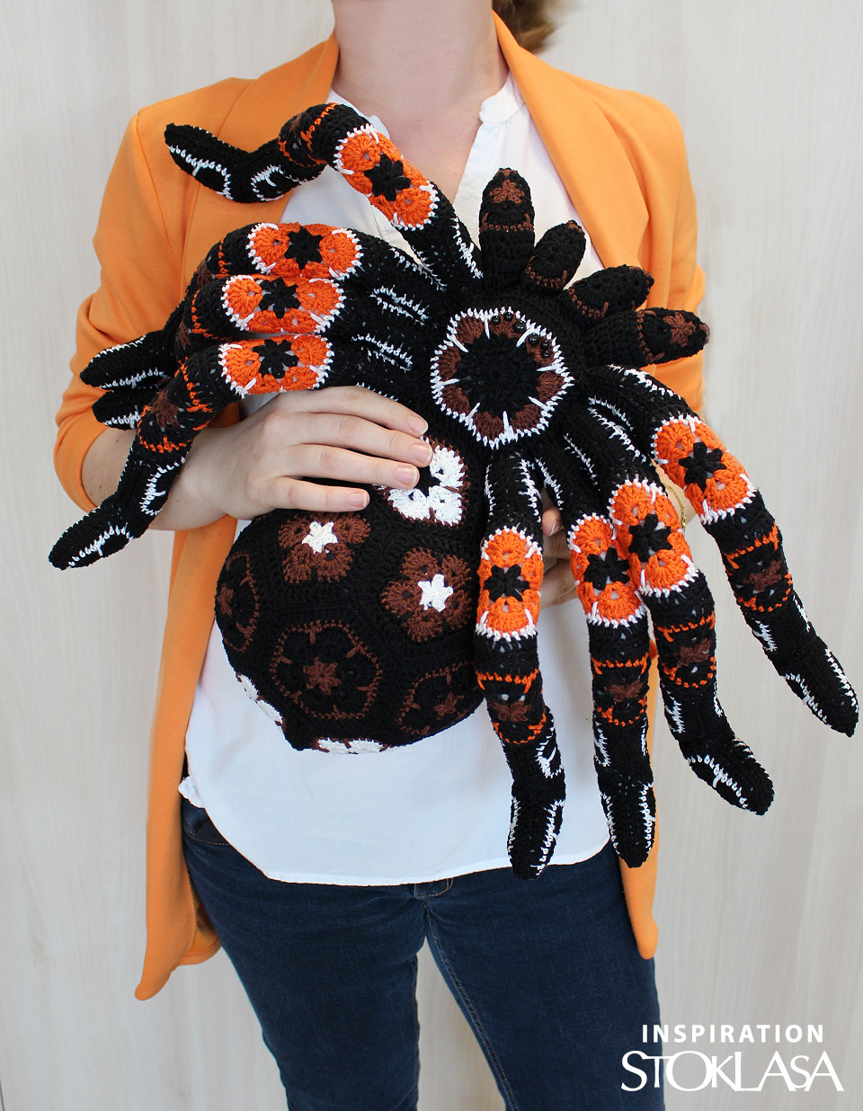 La muestra de la foto (33 x 29 cm) fue tejida a partir de 1 ovillo, con agujas nº 3,5.