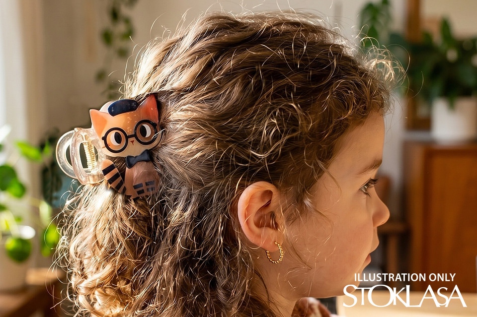 La pinza para el cabello con forma de gato le dará un toque divertido y desenfadado a tu peinado. Es un regalo ideal para cualquier niña o amante de los gatos. Tiene un estampado con un sutil brillo nacarado . Se puede usar para sujetar el cabello fácilmente en casa, en el trabajo o en el tiempo libre, pero también para crear un peinado más elegante para una fiesta. Crearás un peinado llamativo en un instante. La pinza lo sujeta con precisión gracias a su fuerte agarre y sus largos dientes .